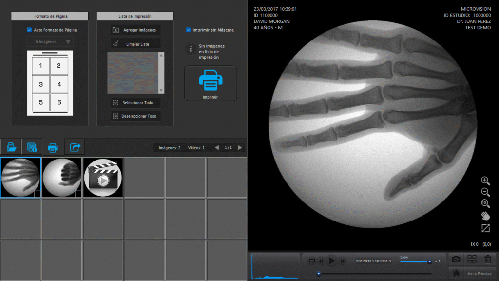 Microvision Classic It is a powerful and efficient software system designed for the acquisition and processing of fluoroscopic images. It is fully compatible with composite video signals under CCIR and EIA standards, making it ideal for use with equipment. C-arm Model y mesas basculantes de rayos X.